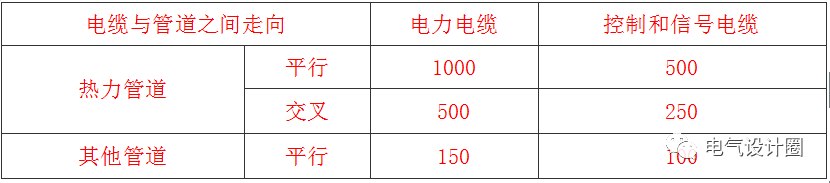 1. 使電纜支架形成電氣通路,且計入其他并行電纜抑制因素的影響。2. 對電纜隧道的鋼筋混凝土結構實(shí)行鋼筋網(wǎng)焊接連通。3. 沿電纜線(xiàn)路適當附加并行的金屬屏蔽線(xiàn)或罩盒等。7)明敷的電纜不宜平行敷設在熱力管道的上部。電纜與管道之間無(wú)隔板防護時(shí)的允許距離,除城市公共場(chǎng)所應按現行國家標準《城市工程管線(xiàn)綜合規劃規范》GB50289執行外,尚應符合下表的規定。